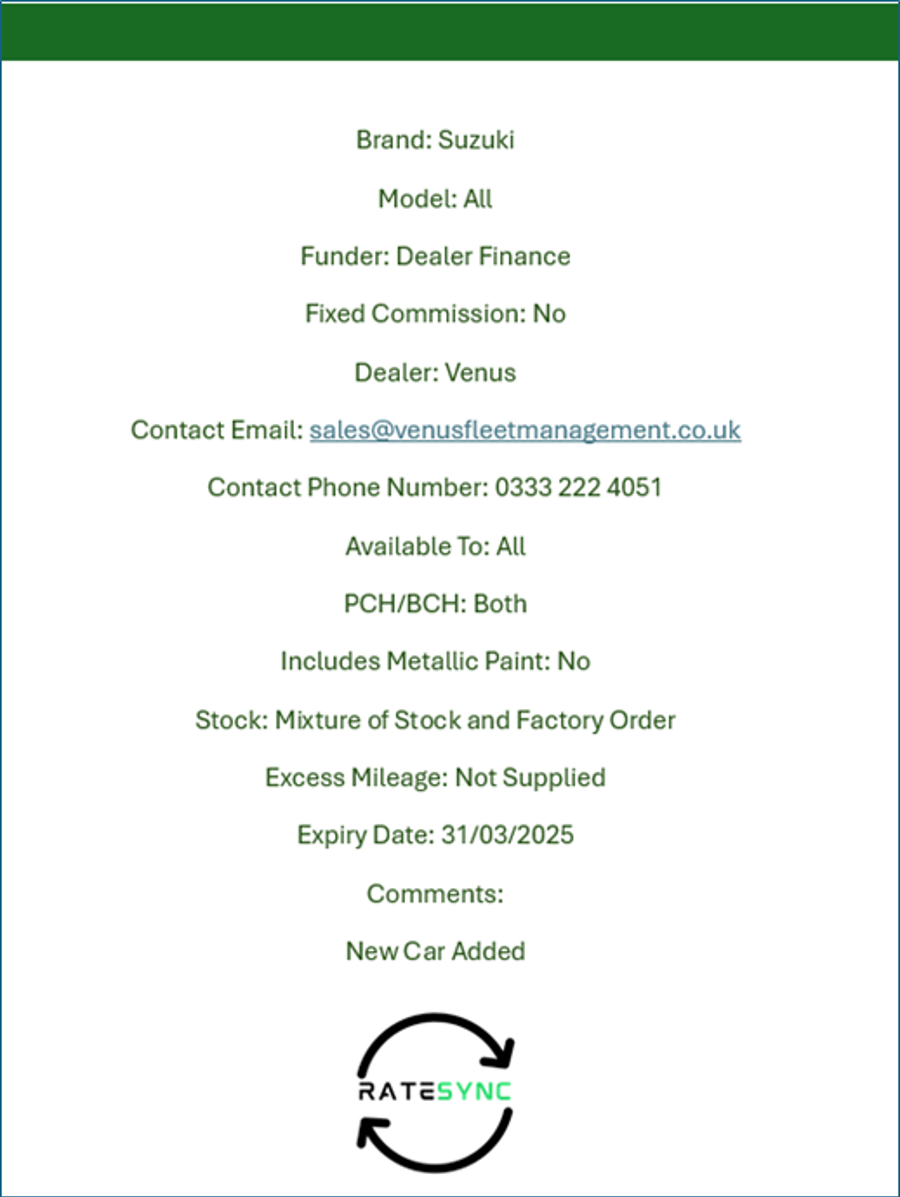 Keeping your leasing rates updated on Automotus can be time-consuming and complicated. RateSync automates the entire process for you. We handle everything from receiving dealer rates, formatting them, and uploading them to Automotus, to configuring commissions based on your conditions. You donβt lift a finger just enjoy accurate, up-to-date rates, effortlessly.